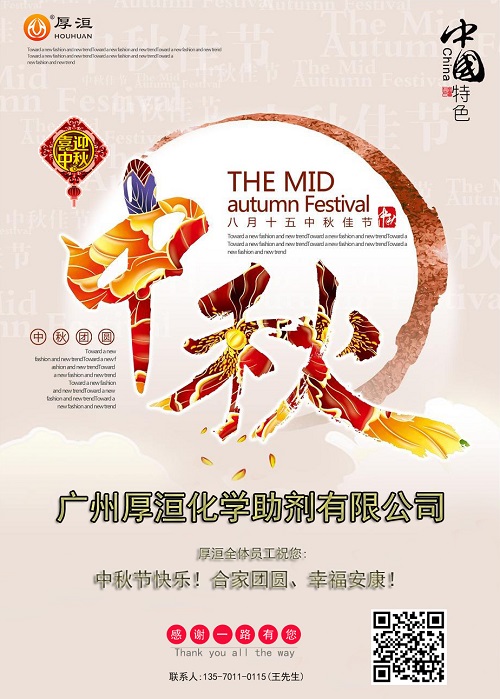 放假期間只接單,節(jié)后發(fā)貨。如有緊急業(yè)務(wù)請(qǐng)直接聯(lián)系公司負(fù)責(zé)人王先生:135-7011-0115。廣州厚洹分散劑廠家全體員工提前祝您:中秋快樂(lè)!合家團(tuán)員!幸福安康